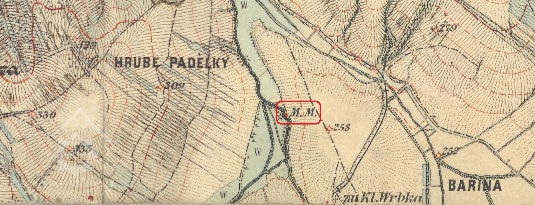 na indikační skice z roku 1909 značen jako zaniklý