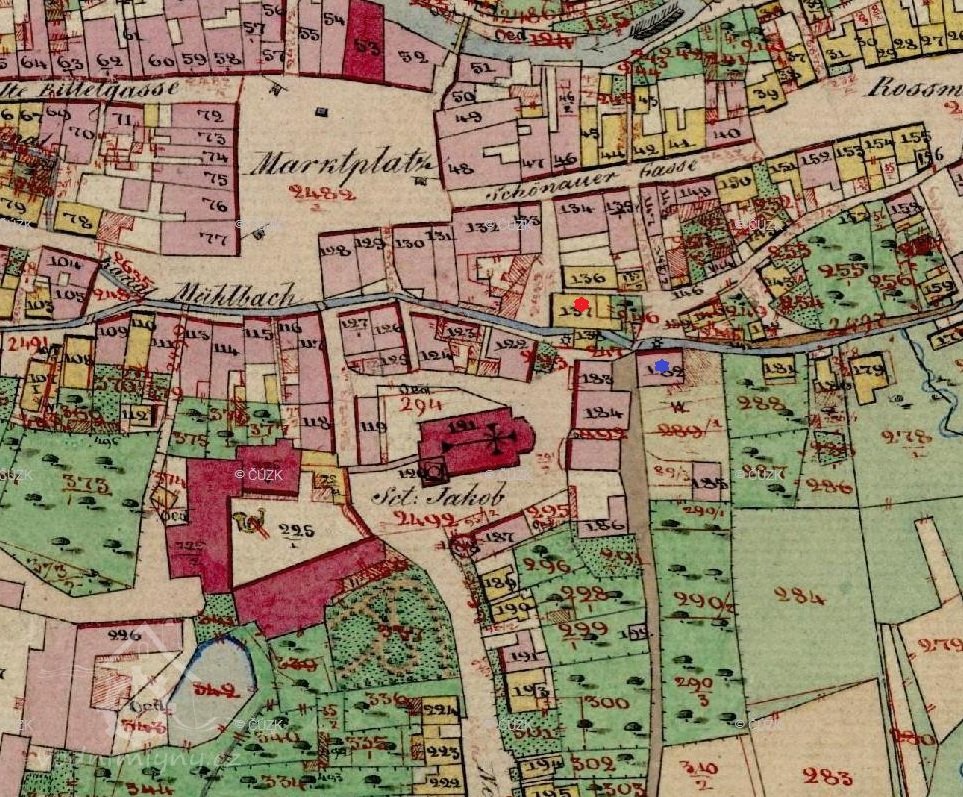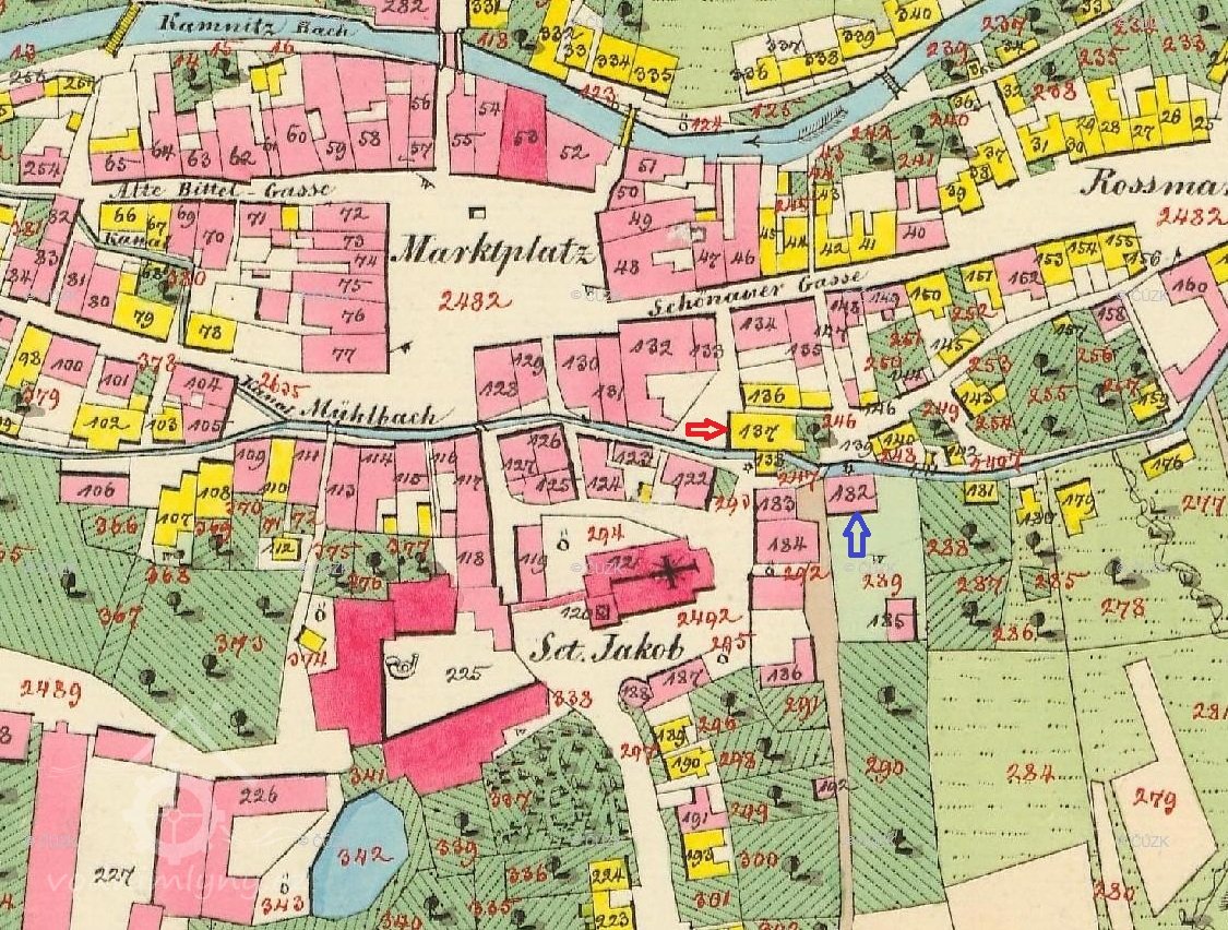 V 16. století severní hranici města Česká Kamenice tvořila řeka Kamenice. Kromě tohoto vodního toku procházel městem náhon, přivádějící potřebnou vodu. V té době v Kamenici pracovaly tři mlýny. Kromě Horního mlýna v Horní Kamenici stál pod Kostelním vrškem /kostel sv. Jakuba/ také Prostřední mlýn. Náhon pak pokračoval po jižní hraně tehdejšího Hrnčířského trhu a Mlýnskou uličkou až k Dolnímu mlýnu a dál do Dolní Kamenice.