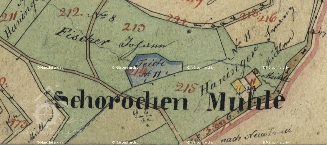 Skica stab.kat.1837:čp.11/st.p.41-vlastník Franz Haninger (mlynář)