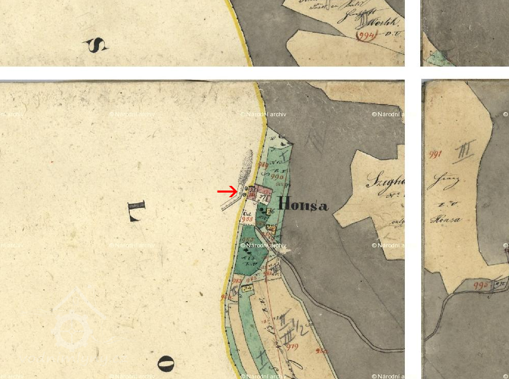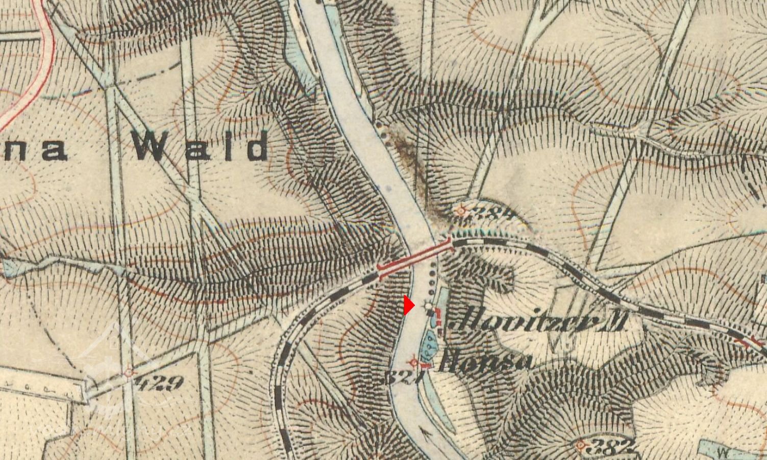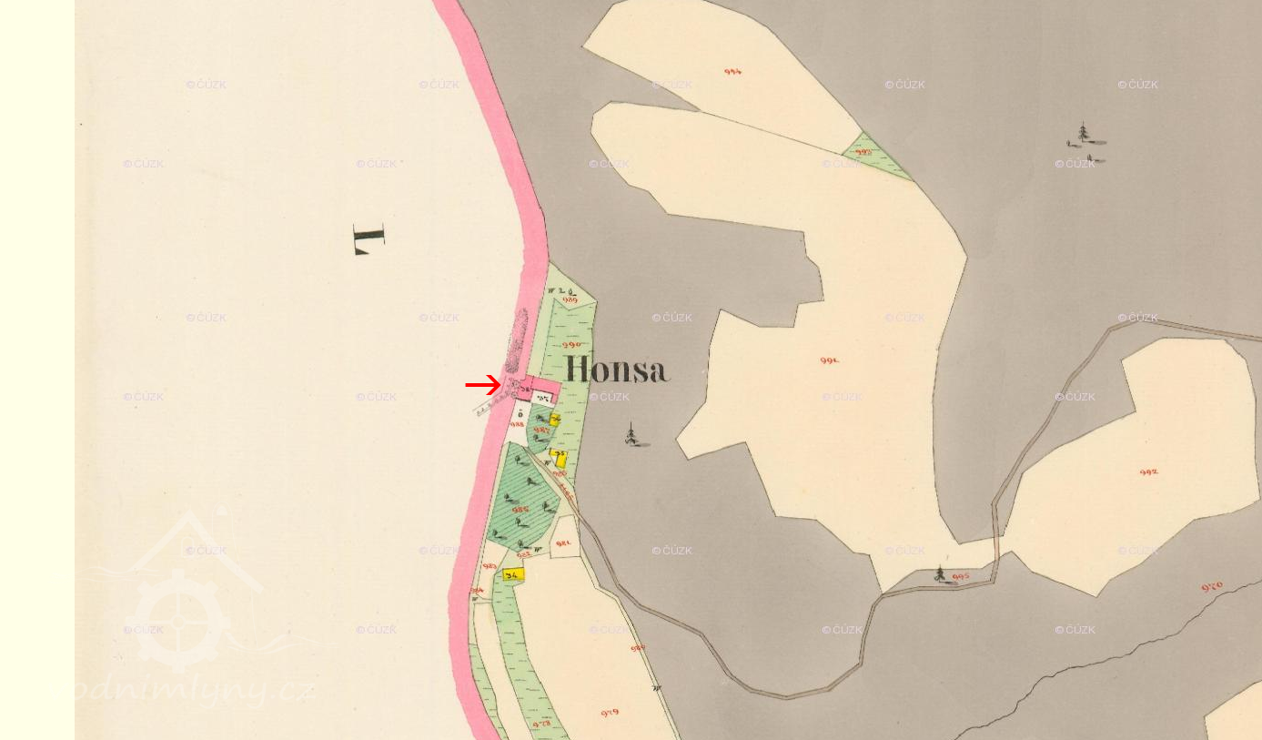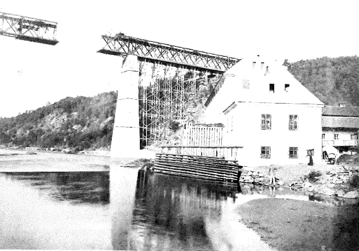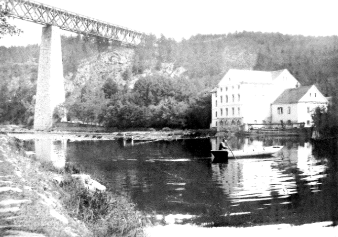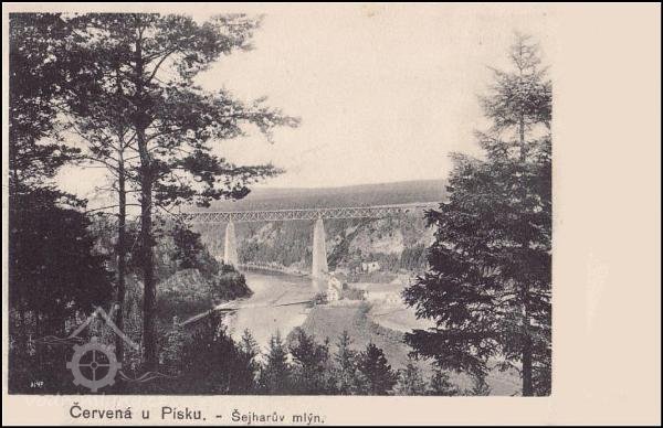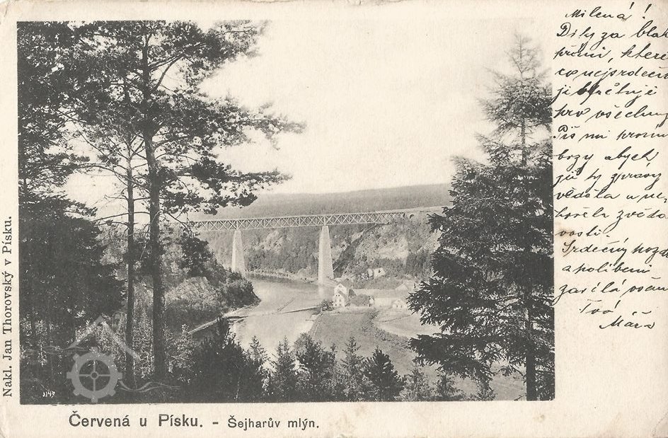 V těsné blízkosti železničního viaduktu stával u řeky historický Honsův mlýn, na kterém od roku 1840 hospodařil rod Šejharů. Šejharův mlýn byl jeden z největších a nejmodernějších vodních mlýnu ve střední Evropě. Mlýn měl 2 vodní kola, 6 válcovacích stolic a od roku 1930 Francisovu turbínu o výkonu 52 HP. Před mlýnem stál nízký jez s vorovou propustí.