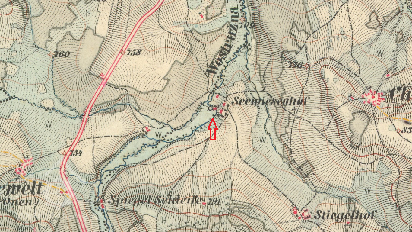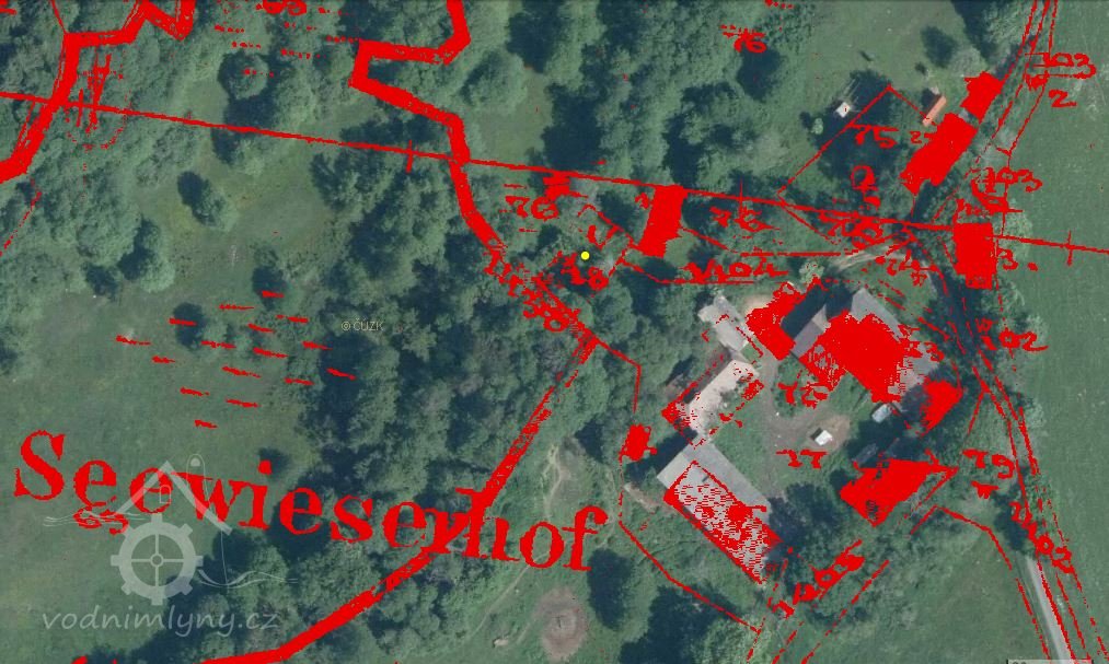 Mlýn čp.25/st.p.20 v k.ú.Javorná na Šumavě patřil do majetku statku Zejbišský Dvůr/Seewieserhof/.Tento statek měl výměru 145 ha.Mlýn, v listinách označovaný také jako "Sägmühle Nr.C.25" ,ležel severně/asi 150m/ od hlavního objektu statku/st.p.17.Nemovitost je zobrazena na mapě Stabilního katastru :Čechy-2788-2, mapový list č.005.Na snímku mapy viz. výše /souřadnice GPS/ je však t.č. zobrazena poloha domu čp.23/st.p.18, rovněž patřící ke statku.
