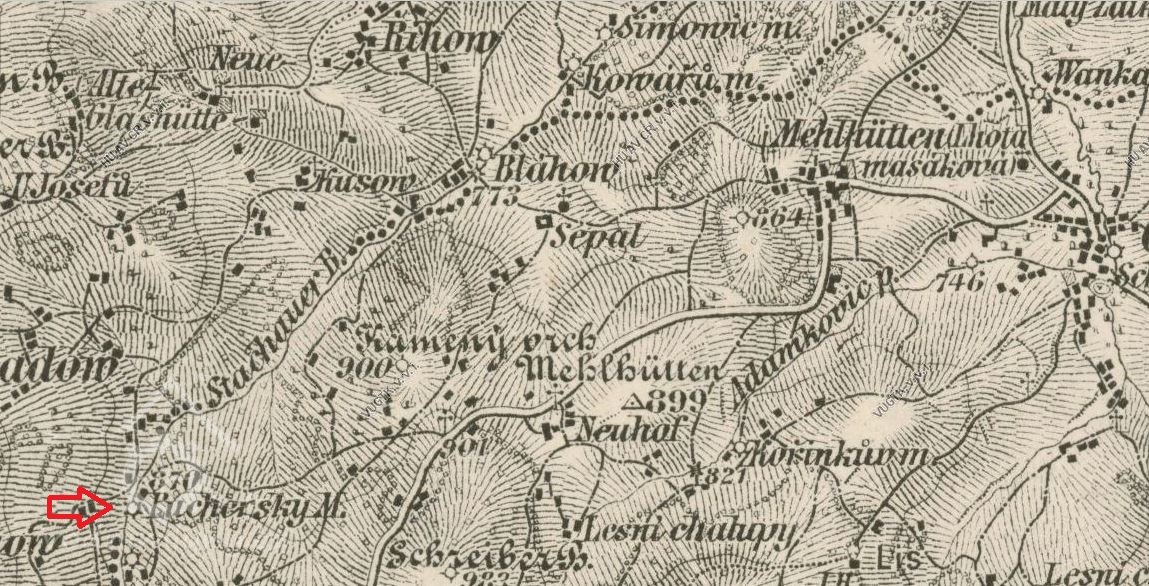 Jednalo se o dům čp.71/st.p.93 v katastrálním území Masákova Lhota.Je zobrazen na mapě Stabilního katastru :Čechy-4514-1, mapový list č.004. Původně zde byla stoupa na drcení křemene/"Pochermühle""Pochwerk", /.Křemenný prach byl dodáván do blízkých skláren.Po ukončení činnosti skláren byl objekt rekonstruován a byla zde také pila.V listinách je nemovitost uváděna jako:"Mlýnská usedlost čp.71".Stručně k vlastnictví: V současné době/po úpravě katastrální hranice /má stavební parcela číslo 403 a je v k.ú.Stachy.