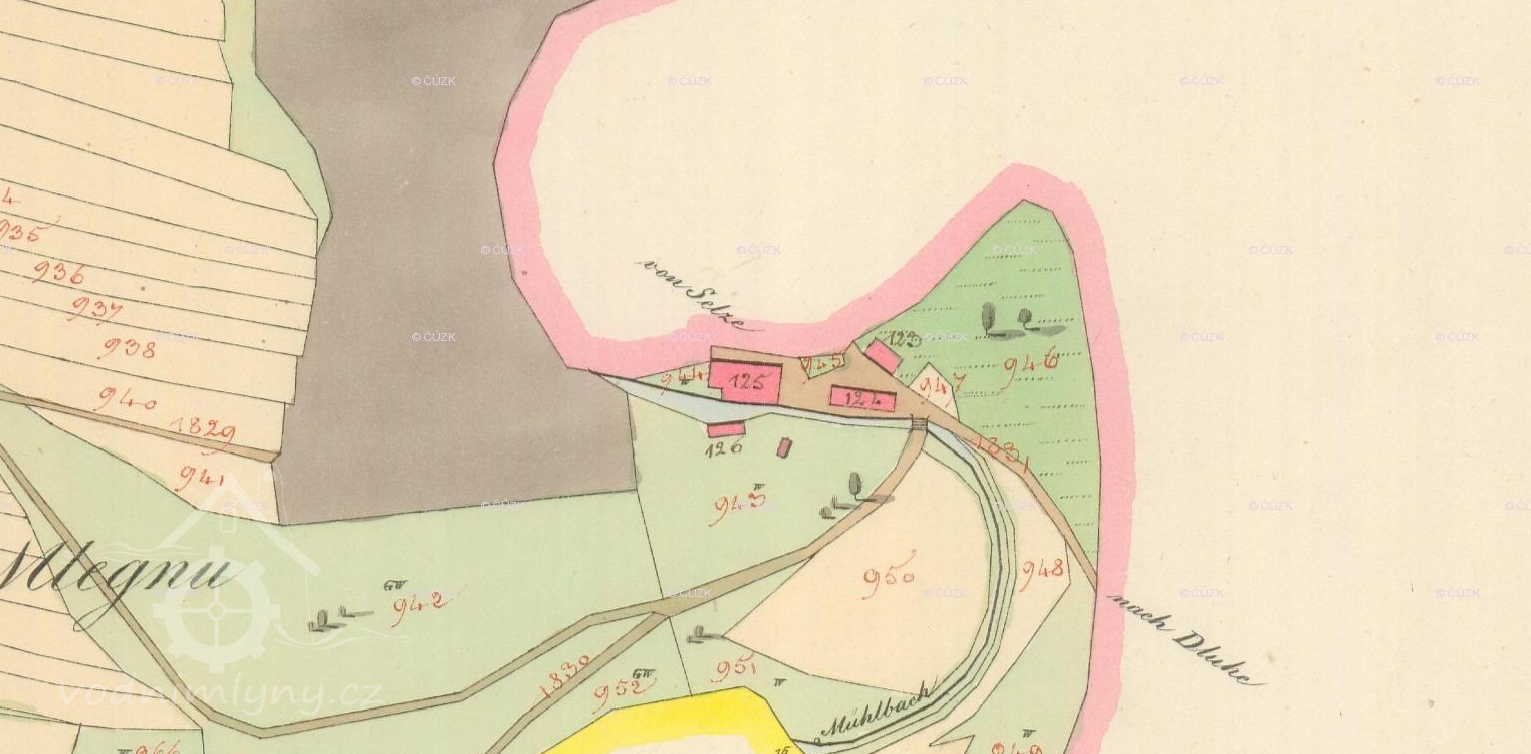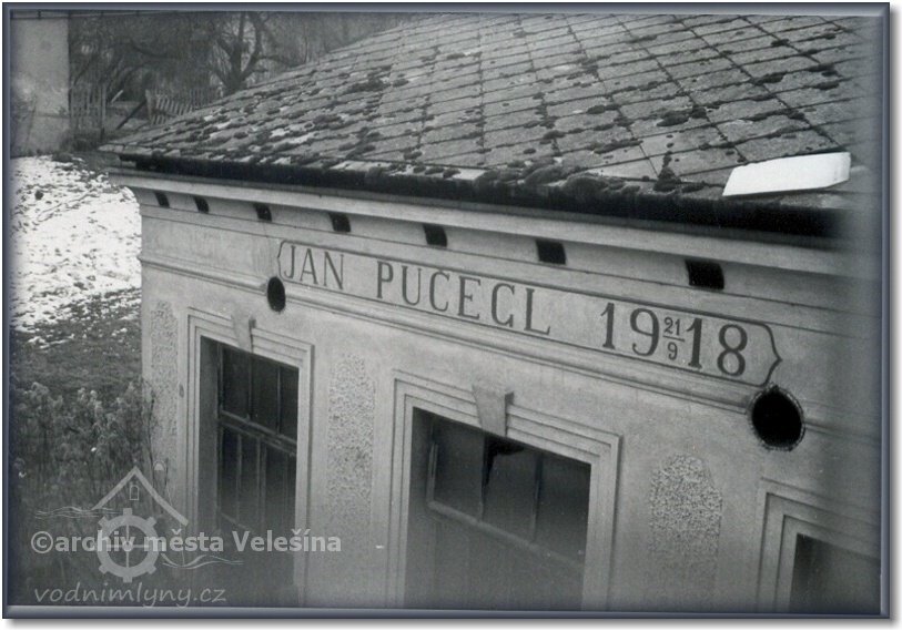 Malše, Velešín 121 (čp. je v Seznamu uvedeno chybně), Jan Pučegl (zde uvedeno příjmení správně !), mlýn-pila-elektrárna, 1 turbína Francis, průtok 2,5 m3/s, spád 4,5m, výkon vodního motoru 120 k. s.