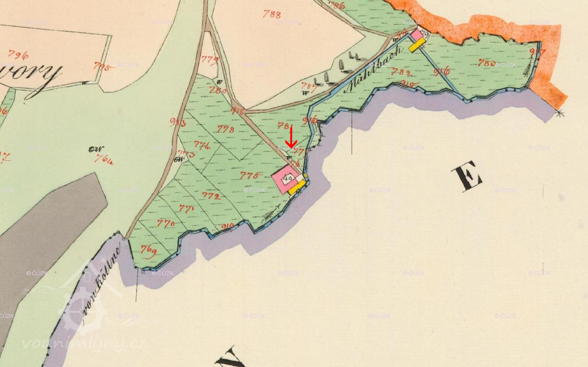 Mlýn je zachycen již na mapě I. vojenského mapování.