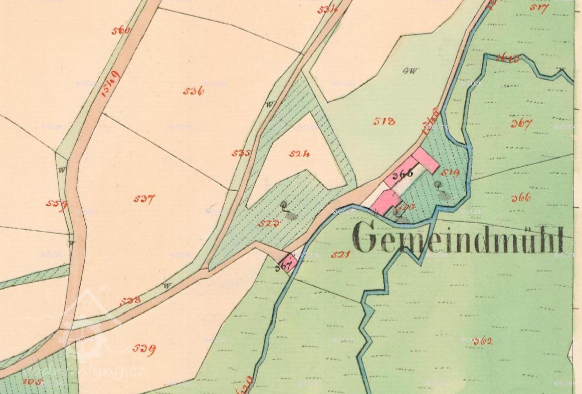 Mlýn je zachycen již na mapě I. vojenského mapování.