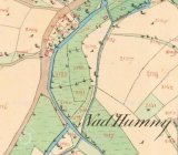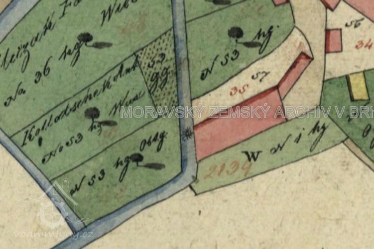P Slavík připustil, že dle pamětí místních byly nejstarší mlýny údajně dva - jeden níže v obci a ukazoval k přítoku potoka pod Skaly do Medlovského - cca u č.17 a horní nad přítokem Vážanského potoka do Medlovského(u samoty dříve Tomanů) a příjezd k mlýnu byl po mostku-jediném v obci - v r.1611 uváděn jak Plchův mostek-viz 1. Jos. mapování. Údajně oba mlýny zaniklé povodní, proto bylo bezpečnější přivádět vodu umělým kanálem k č.35 a shodou okolností i na pozemku pradědy z č.1. Za mého mládí se část přívodu rozorala a tok potoka výše se přemístil blíže k silnici.(Vážanský potok zůstal cca ve svém korytě s přítokem do Medlovského, ale již bez strouhy k budově dnešního mlýna-viz 1 jos. mapování)
