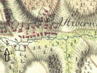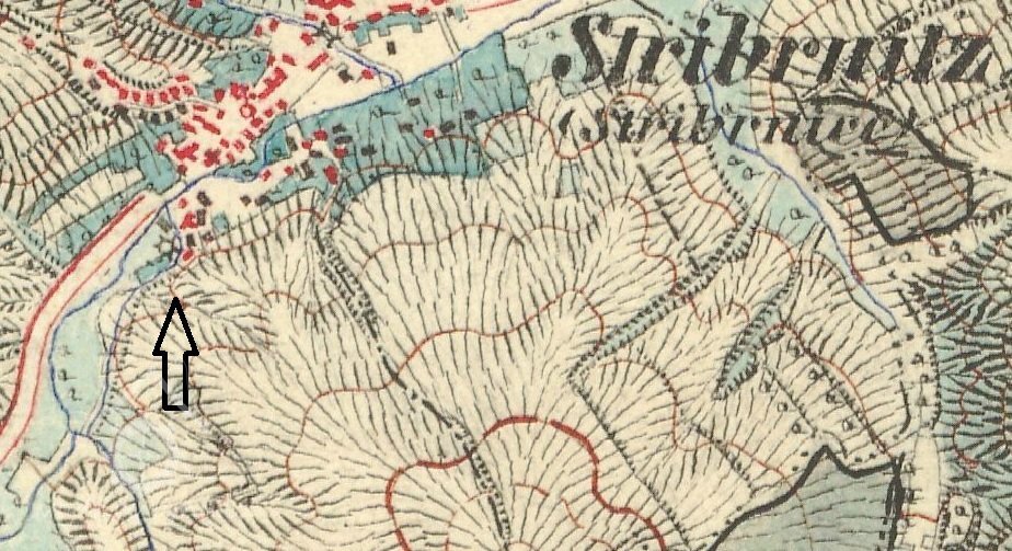 Na přiložené mapě 1. jos. mapování je horní mlýn jednoznačně nad přítokem Vážanského potoku i Plchův mostek k Medlovicím je v záběru. První budova statku vpravo s velkým nádvořím je nynější mlýn č.35 - i situačně a vede tam od Váž. potoka strouha, ale nemá znak kola a 3 poslední velký statek či dvůr za vodou je později č.18-(17)-dnes vše zastavěno a tam údajně u potoku měl být dolní mlýn, či v obci v nájmu-pana Petra Nýče z Awertá, majitele Stříbrnského svob. dvoru - viz přil. registr. Za potokem k Buchlovu to bylo pod správou lovecké obce.12 svob. lovců a soudců loveckého práva na hradě Buchlově, kdy si volili starostu a předsedajícího soudu ze svého středu. Lovecká obec a dvůr byli v těsném sousedství ,ale v r.1611 samostatné správní jednotky? Přímo sousedi dvoru byli rody Masařů a Blanařů, majitelé jatek. Masaři platili jak Lovecké obci, tak část i majiteli dvoru.