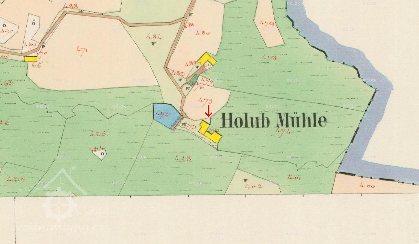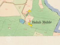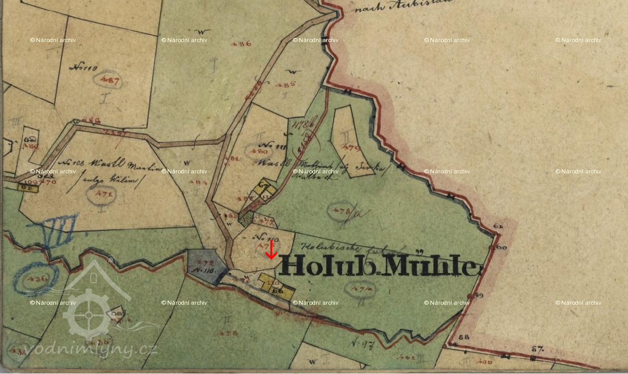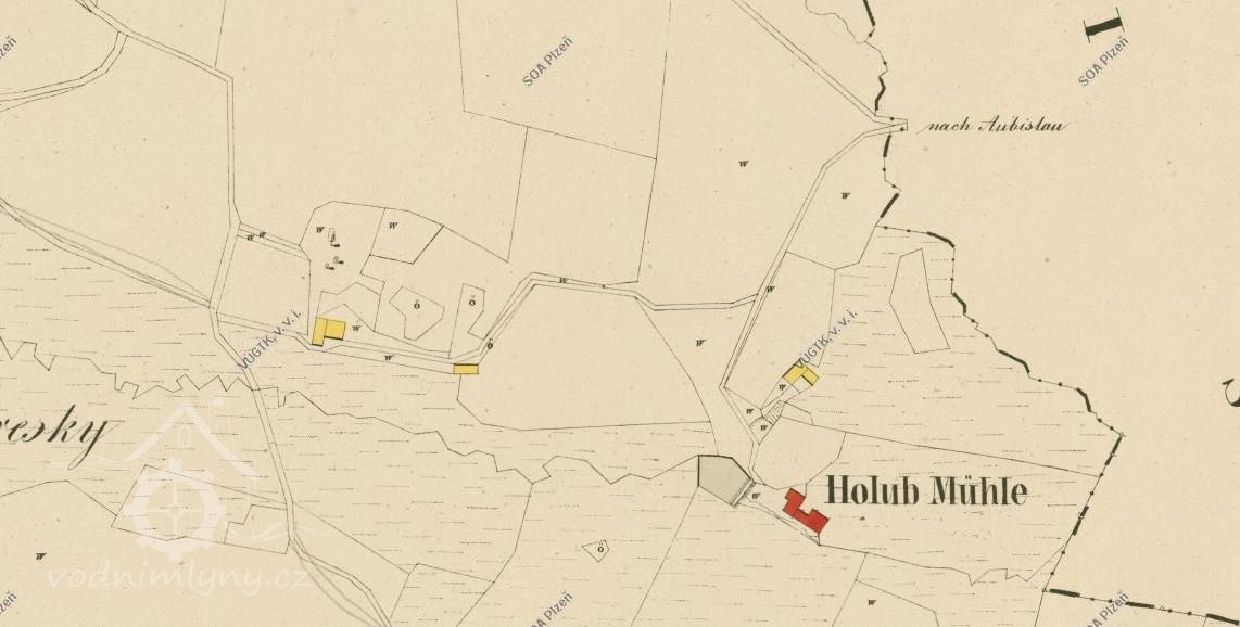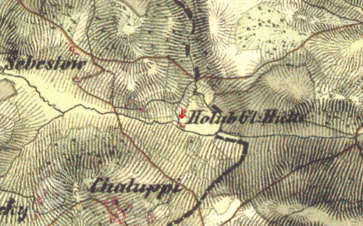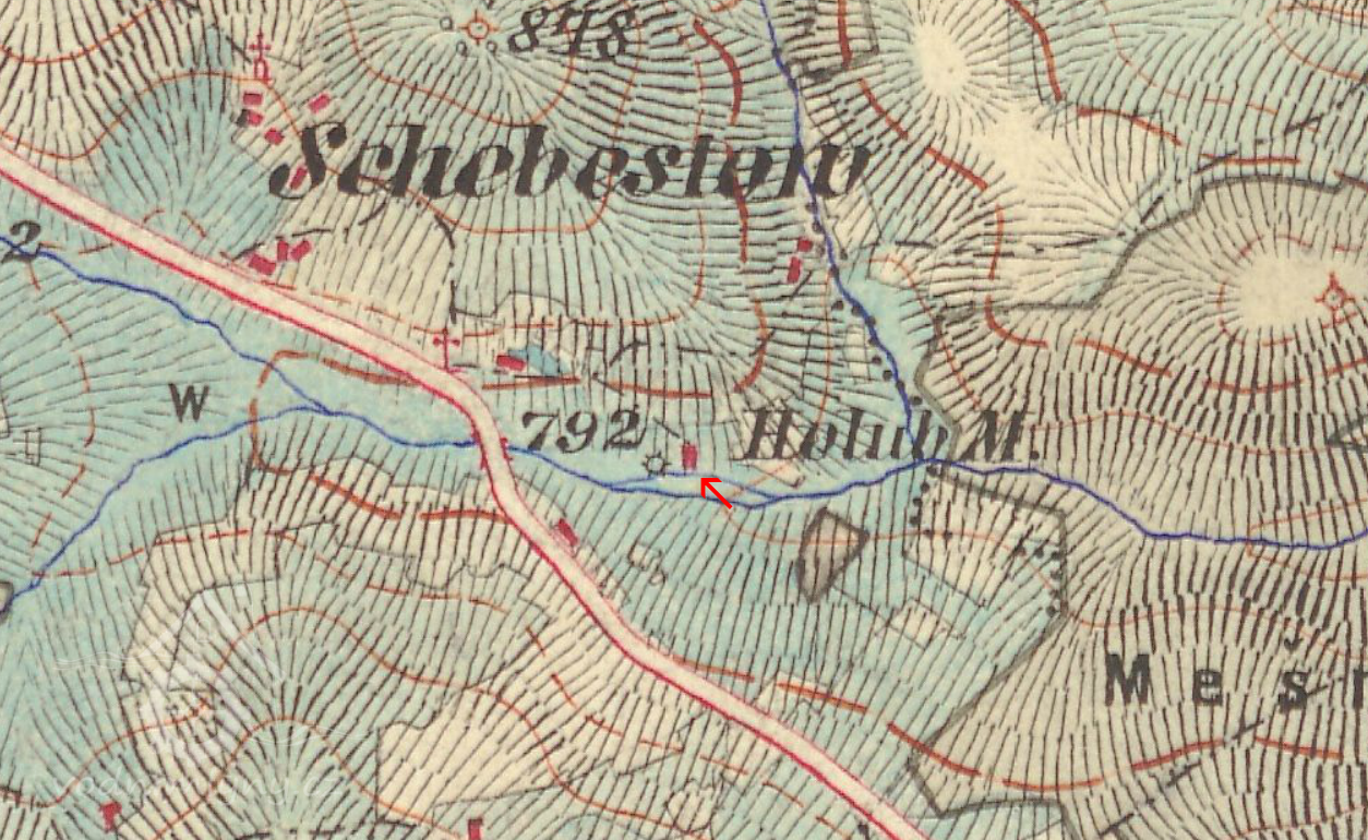 Na mapě II. vojenského mapování je mlýn označen jako "Holubova skelná huť", jedná se patrně o chybu mapovatele, nejsou známy záznamy o existenci hutě v oblasti Šebestova, objekt je jako mlýn navíc uváděn na všech mapách před i po II. voj. mapování.