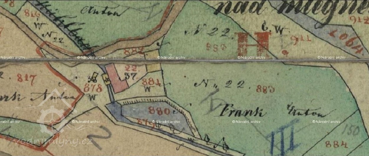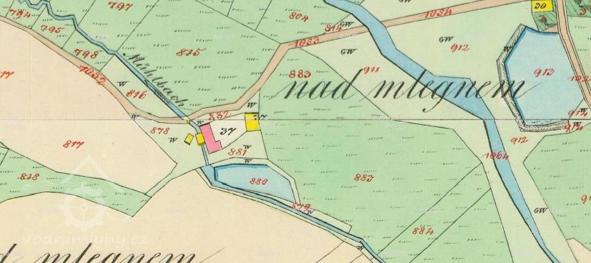 V roce 1932 byl mlýn vybaven vodním kolem na spodní vodu o hltnosti 0,1 m3/s, spád 4,2 m a max. výkon vodního díla byl 3,6 k.s. (JV)