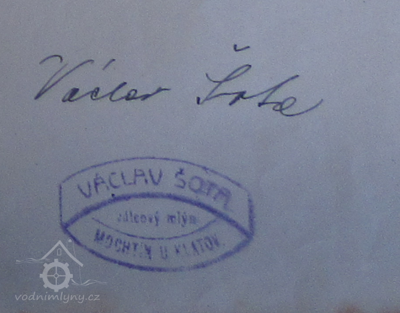 V r. 1926 převzal mlýn Václav Šota od svého otce Václava Šoty (JV)