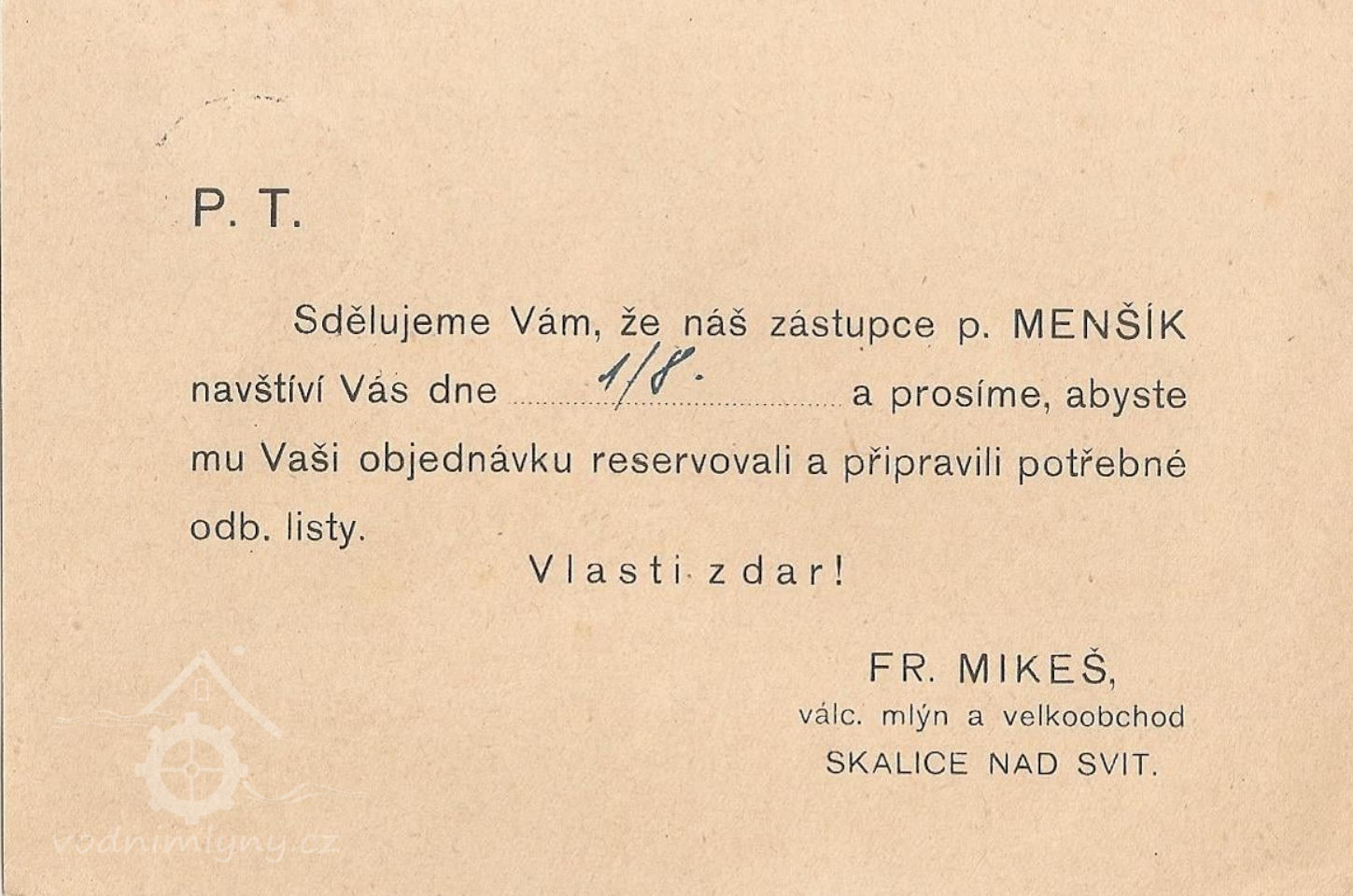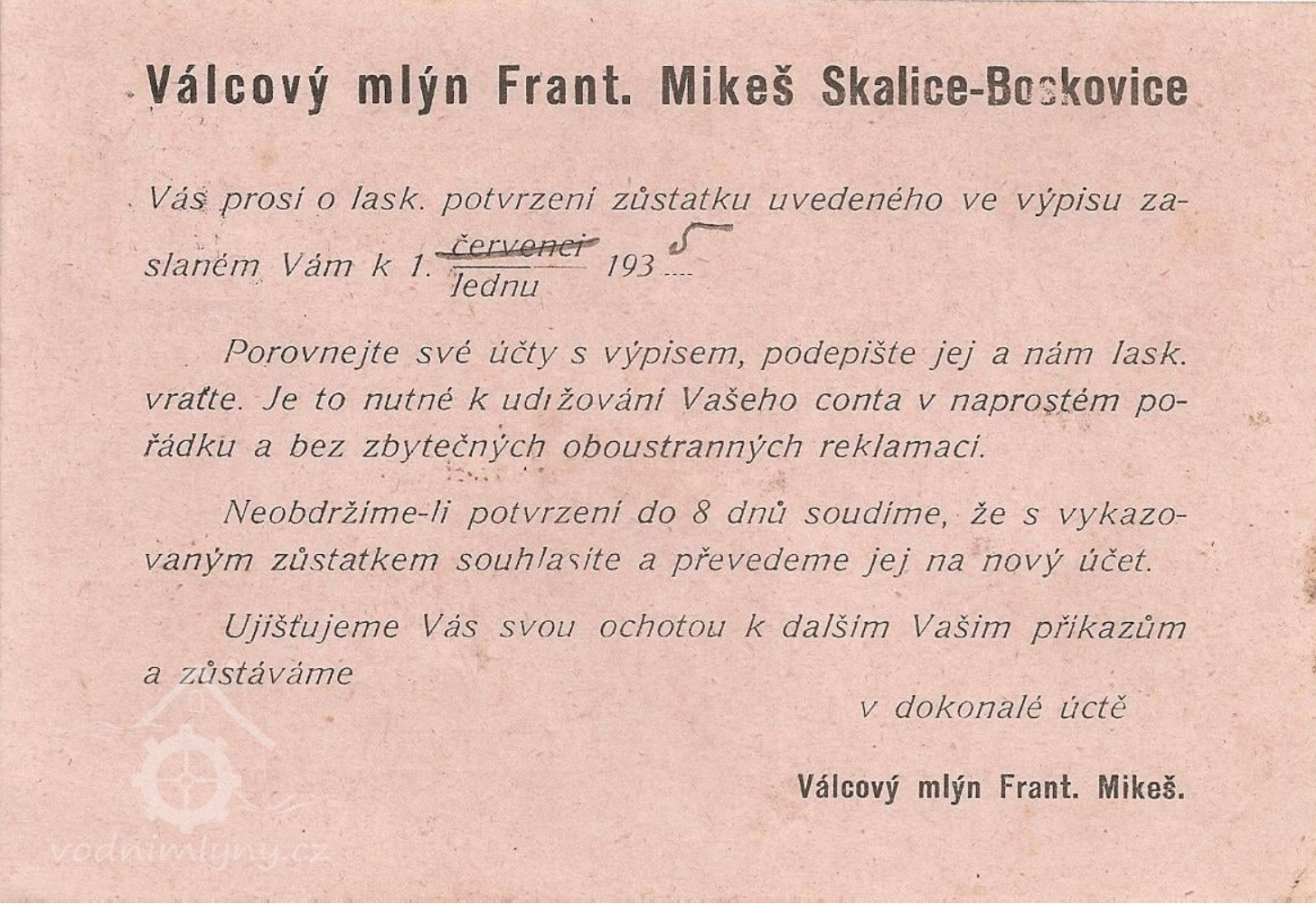 Starší zmínka je v místopise Boskovic. Např. v r. 1703 dne 8. aug. byl čten ortel několika vězňům, kteří ve skalickém mlýně vyrabovali Pavla Holáska.