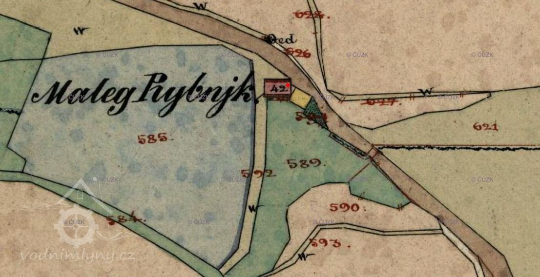 1930 - uváděn Karel Rosenauer, mlýn měl 1 kolo na svrchní vodu, vodní dílo mělo výkon 4,2 k.s.