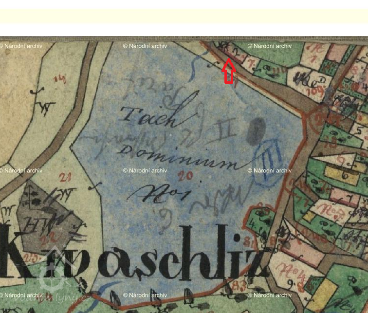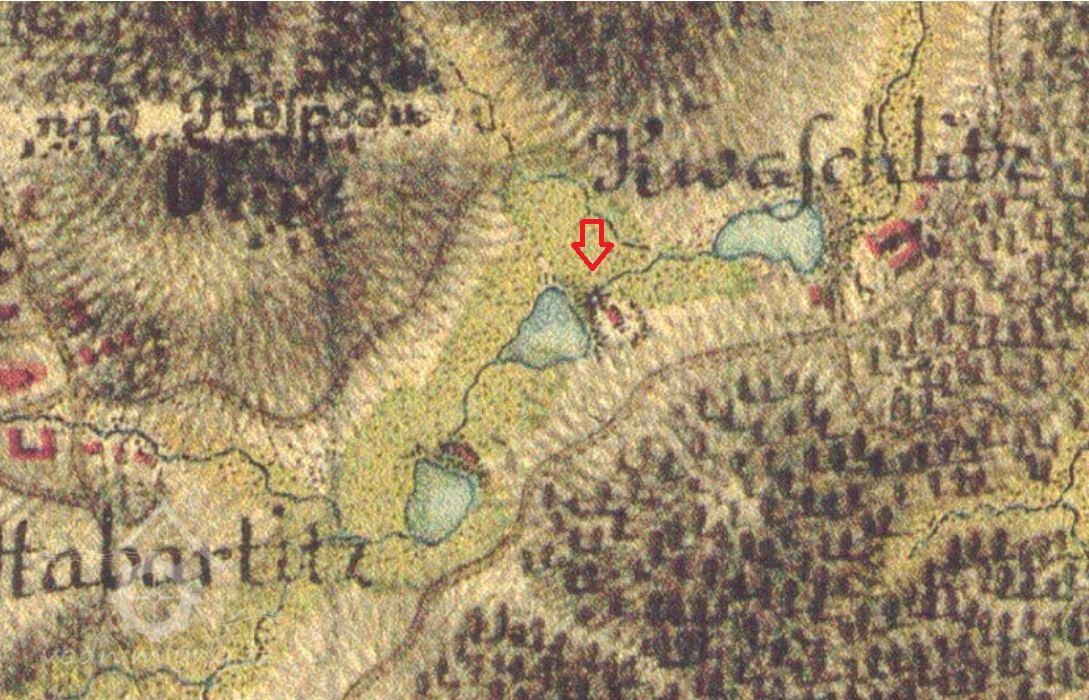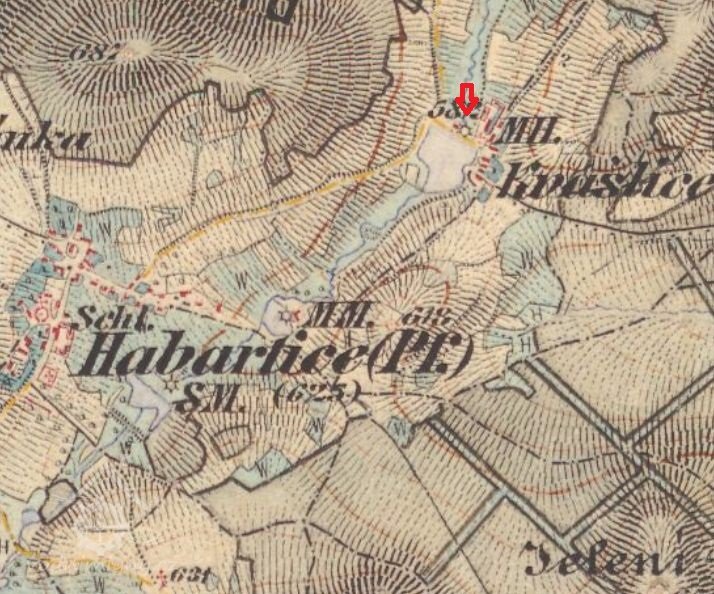 Mlýn zobrazen na I. vojenském mapování.