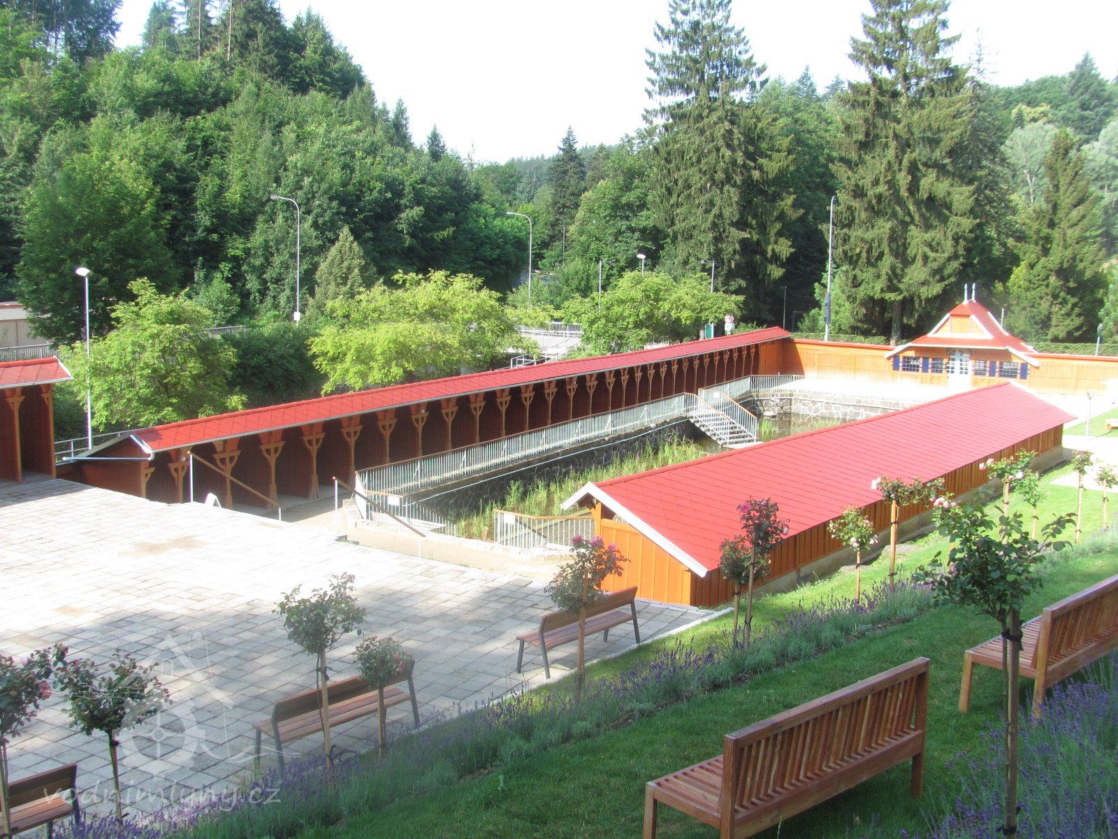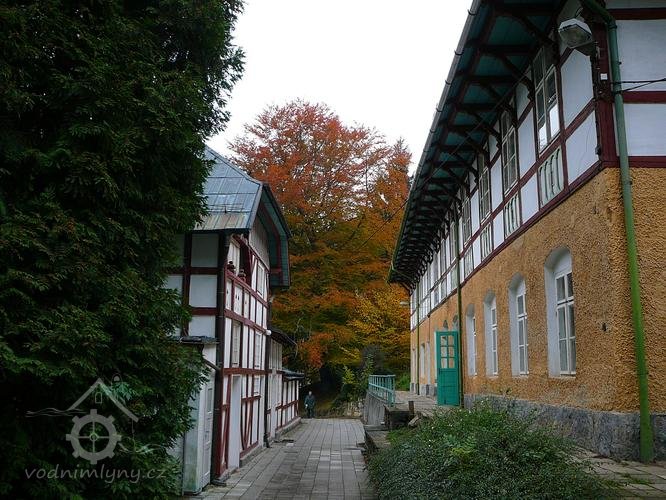 Mlýn v krásném zákoutí pod Jestřabím klapal spokojeně, přecházel stále z rukou, starobou zesláblých, do rukou mladších a až r. 1860 kupuje ho opět vrchnost, když vidi, že je nutno získat pro budoucí budování lázní potřebné pozemky. Mlýn i v rukou panských slouží svému Účelu ještě dále (vrchnost po odkoupení přistavila ke mlýnu ještě pilu). Serenyi dal mlýn do nájmu a nájemcem tohoto mlýna a pily byl až do konce, t.j. rok 1902 František Martinec. Ĺíkali mu také Jestřabský. Až roku 1902 padlo jeho rozkošné okolí do oka prozíravému tvůrci moderních lázní Luhačovic, nezapomenutelnému Dr. Františku Veselému, který jej svěřuje Dušanu Jurkovičovi, aby na jeho místě vykouzlil jednu ze svých architektonických pohádek.
