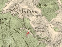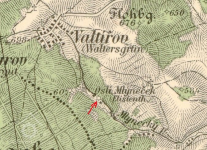 III. vojenské mapování - Františko-josefské 1877-1880 již uvádí název Oslí Mlýneček – Elisienthal.
